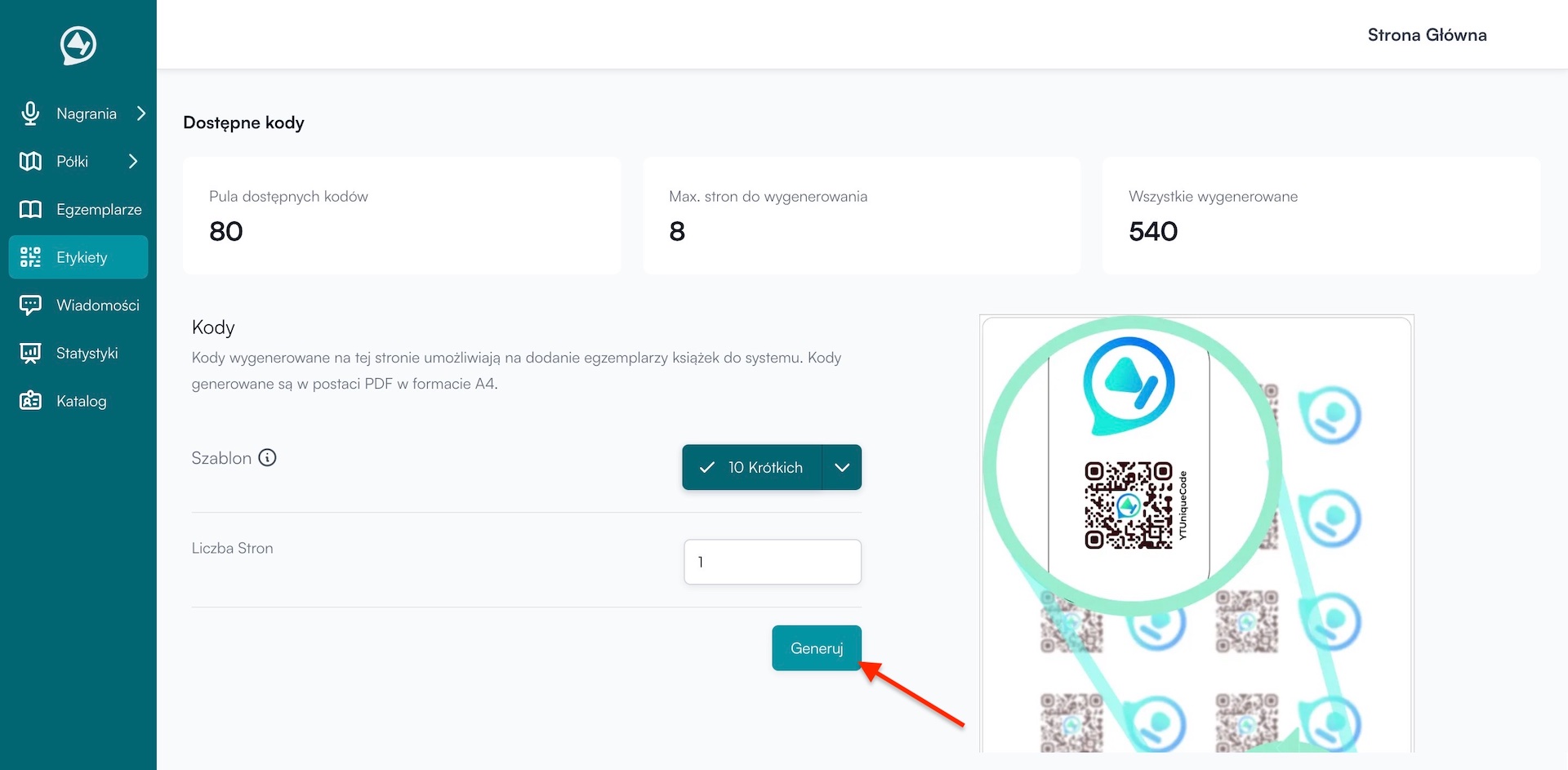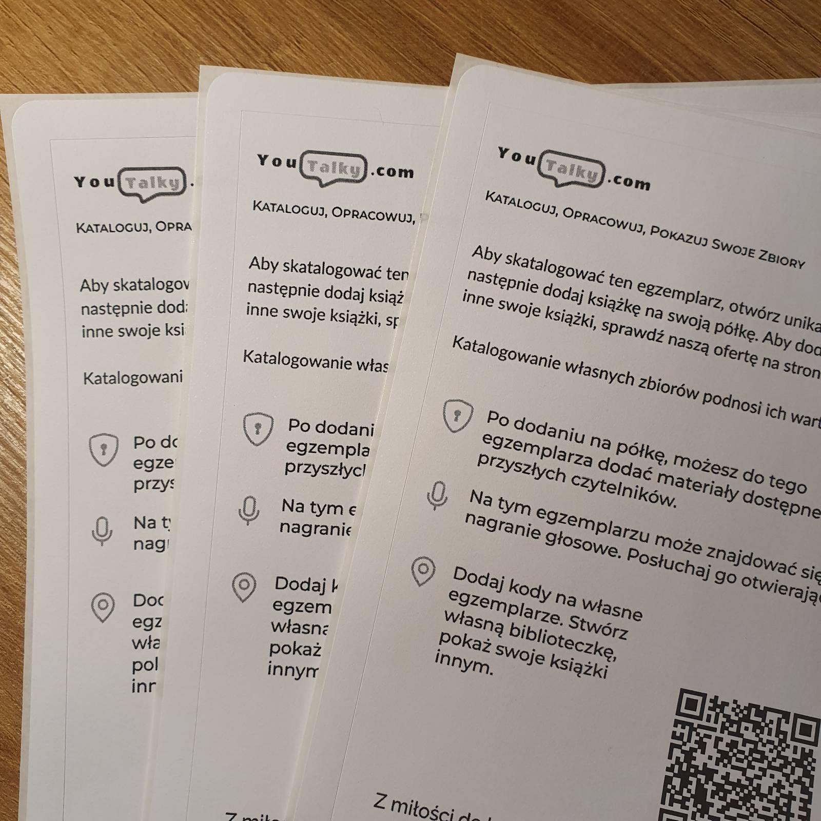 Każdy użytkownik posiada możliwość wygenerowania kodów w Bibliodesku. Wygenerowane kody po wydrukowaniu są gotowe do połączenia z egzemplarzem książki. Możesz też kupić u nas gotowe naklejki, które wydrukowane są na etykietach samoprzylepnych Emerson (dostępne w sklepach)