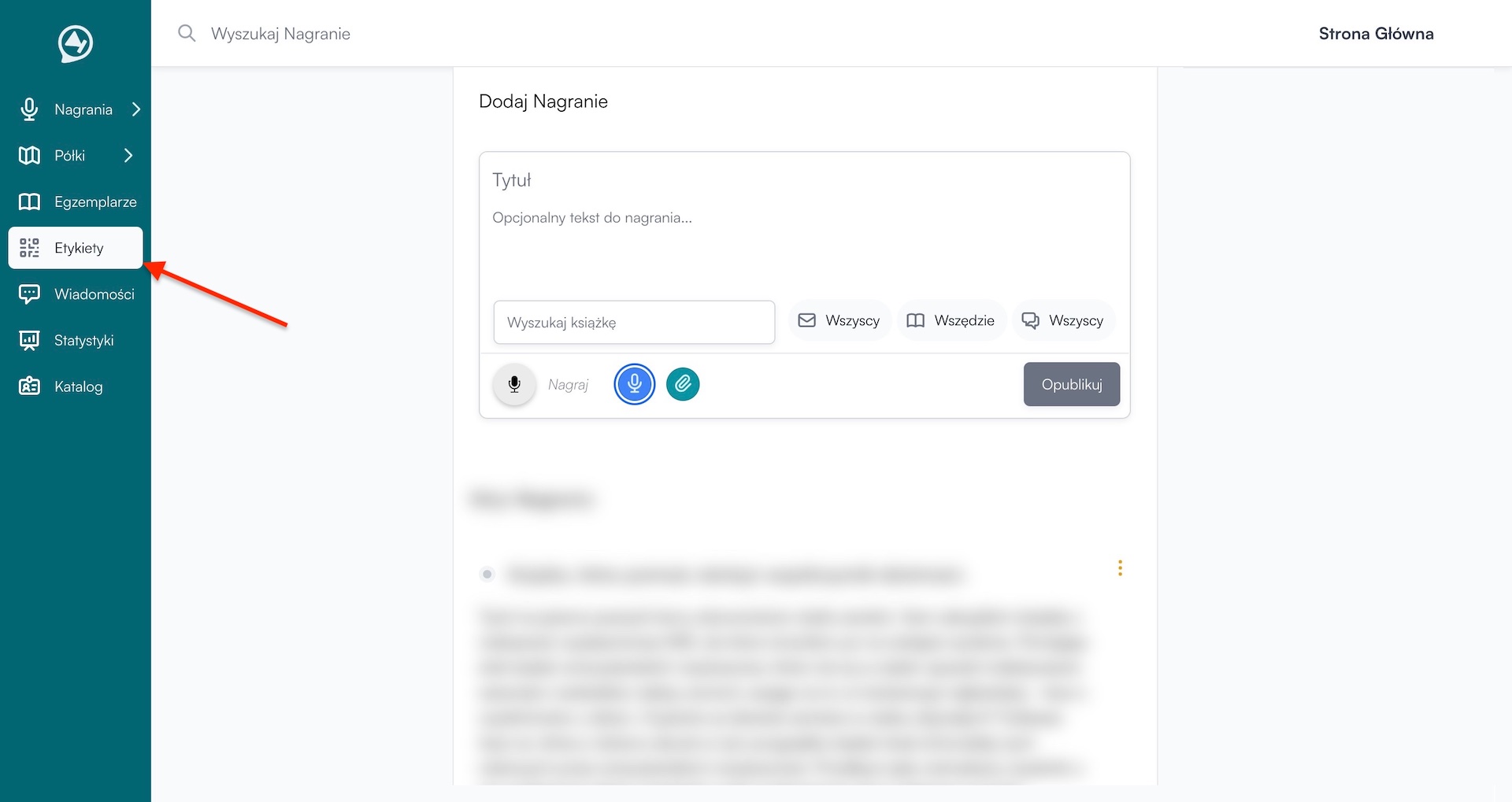 Aby przyporządkować książkę do półki i umożliwić jej odnalezienie, wymianę z innymi użytkownikami lub dodać do niej nagranie głosowe, należy dodać do niej etykietę z kodem QR a następnie zeskanować go.